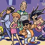 Outside of greeting cards I've also done occasional illustration work for other media such as newspapers, websites and children's books. I don't try to pigeonhole myself into one particular style, although I do have some favorites. I do enjoy exploring what sort of look might be suitable for communicating the idea and often discuss with the client what they'd like to see. I'm also willing to try new directions. I use a variety of mediums, including (but not limited to:) brush and ink, technical pen, ink and watercolor, colored pencil, gouache and electronic media such as Photoshop and vector-based programs.